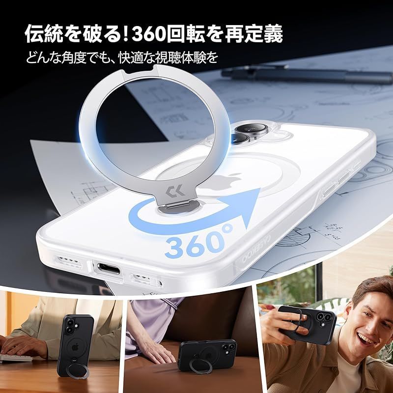 商品名:【2025最高傑作\u0026定点360度回転】CASEKOO iPhone 16 用 ケース 米軍MIL規格 耐衝撃 MagSafe対応 高耐久性【横縦両立?角度自由調整】 最大25W急速充電対応 指紋防止/マット仕上げ/黄変防止/半透明 超強磁力 ラップホール付き