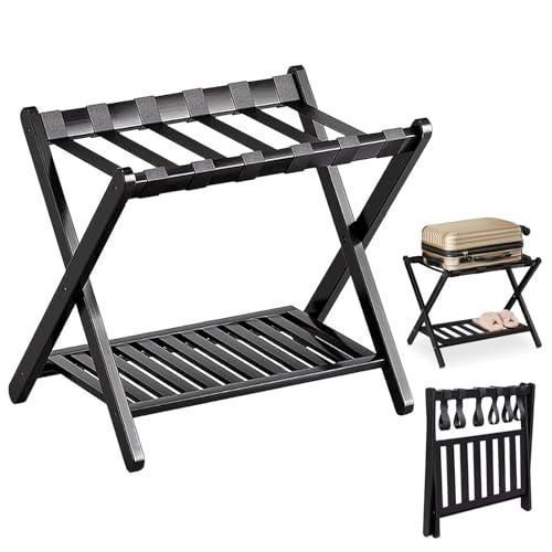 スーツケース収納ラック おしゃれ 竹製 荷物ラック ラゲッジラック 折りたたみ式 バゲージラック 荷物置き バッゲージラック 2段 靴棚付き 68 45 55 cm ホ