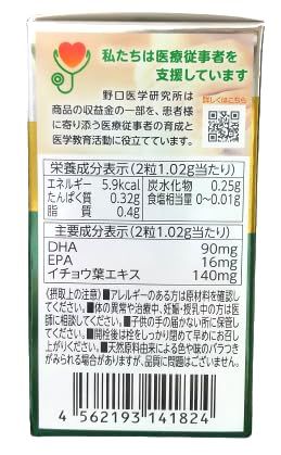 野口医学研究所 イチョウ葉&DHA EPA 60粒 約30日分 栄養補助食品 オリジナル賞味期限シール付 セット 3