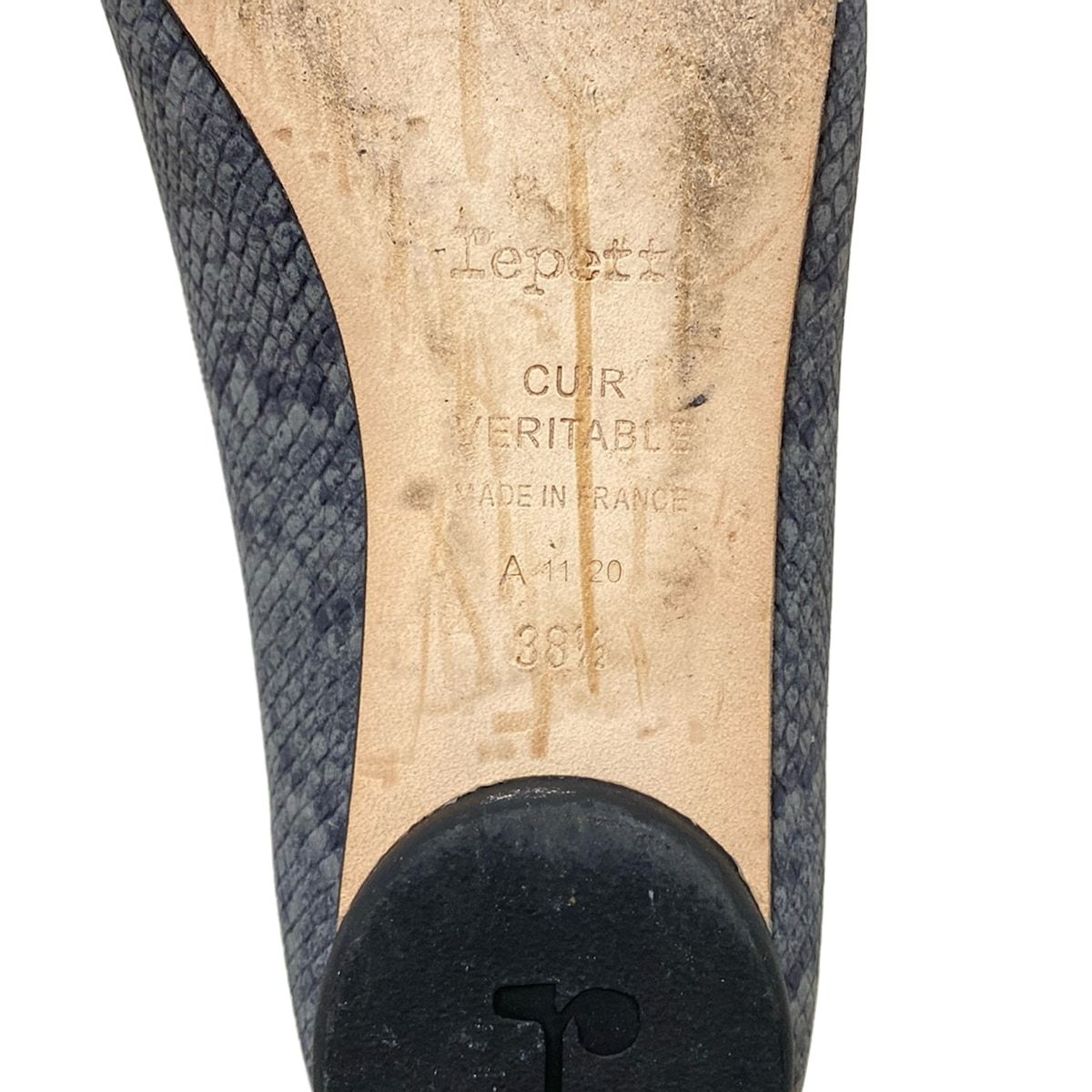 repetto レペット フラットシューズ 38 1 2 レディース - ダークグレー×グレー×黒 パイソン柄 型押し加工 リボン