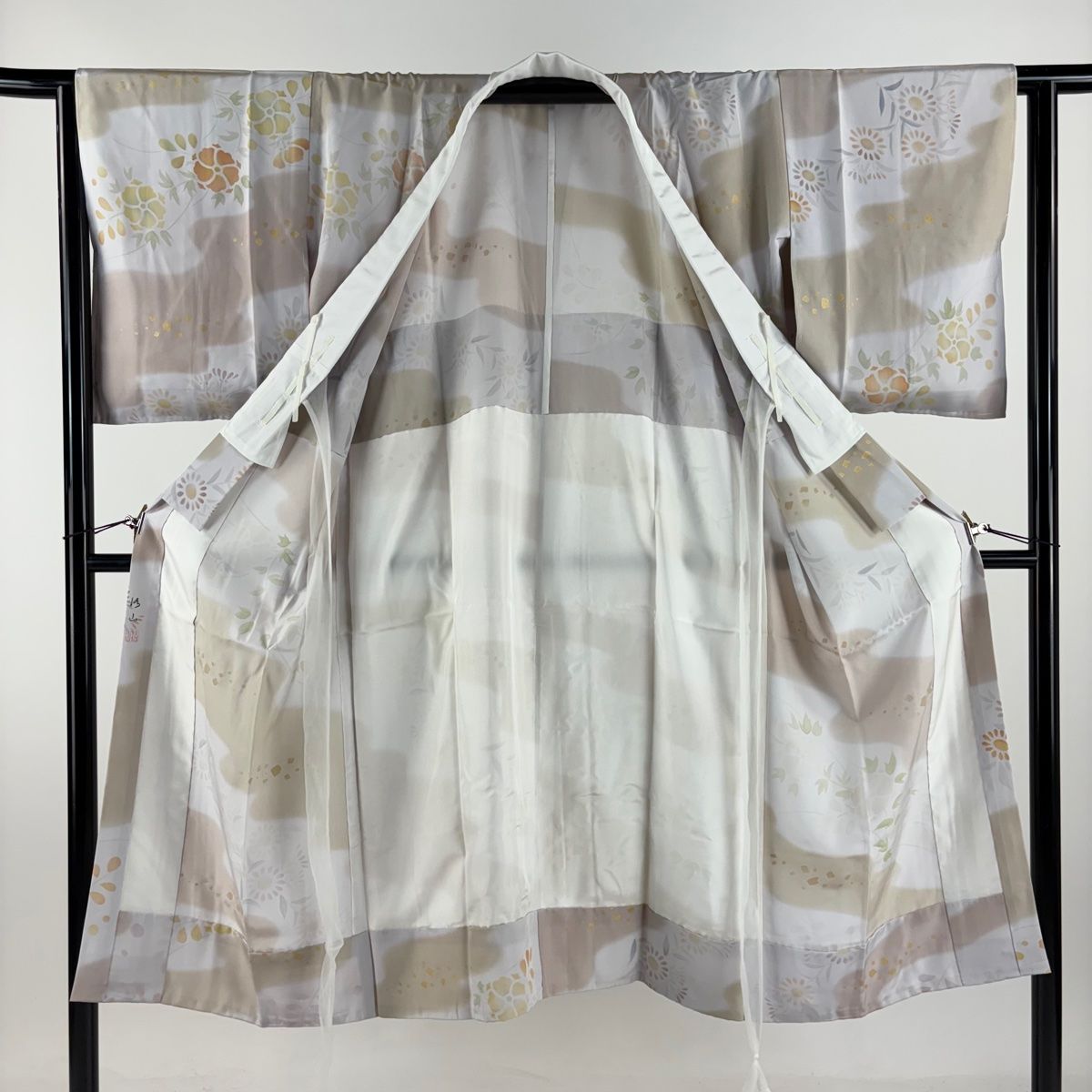 長襦袢 身丈129 cm 裄丈63 S 落款 草花 霞 金彩 染め分け 灰紫 正絹 秀品