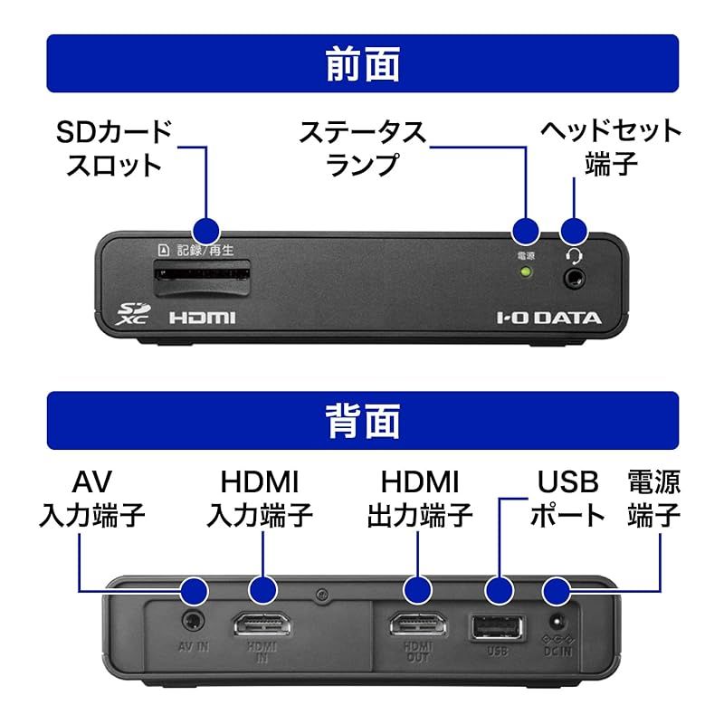 商品名:IODATA キャプチャーボード HDMI キャプチャー PC不要 ゲーム 録画 フルHD (PS5/Switch/レトロゲーム) SD/HDD保存 ビデオテープ VHS 8mm ダビング デジタル化 Web会議 日本メーカー GV-HDREC/B2UE