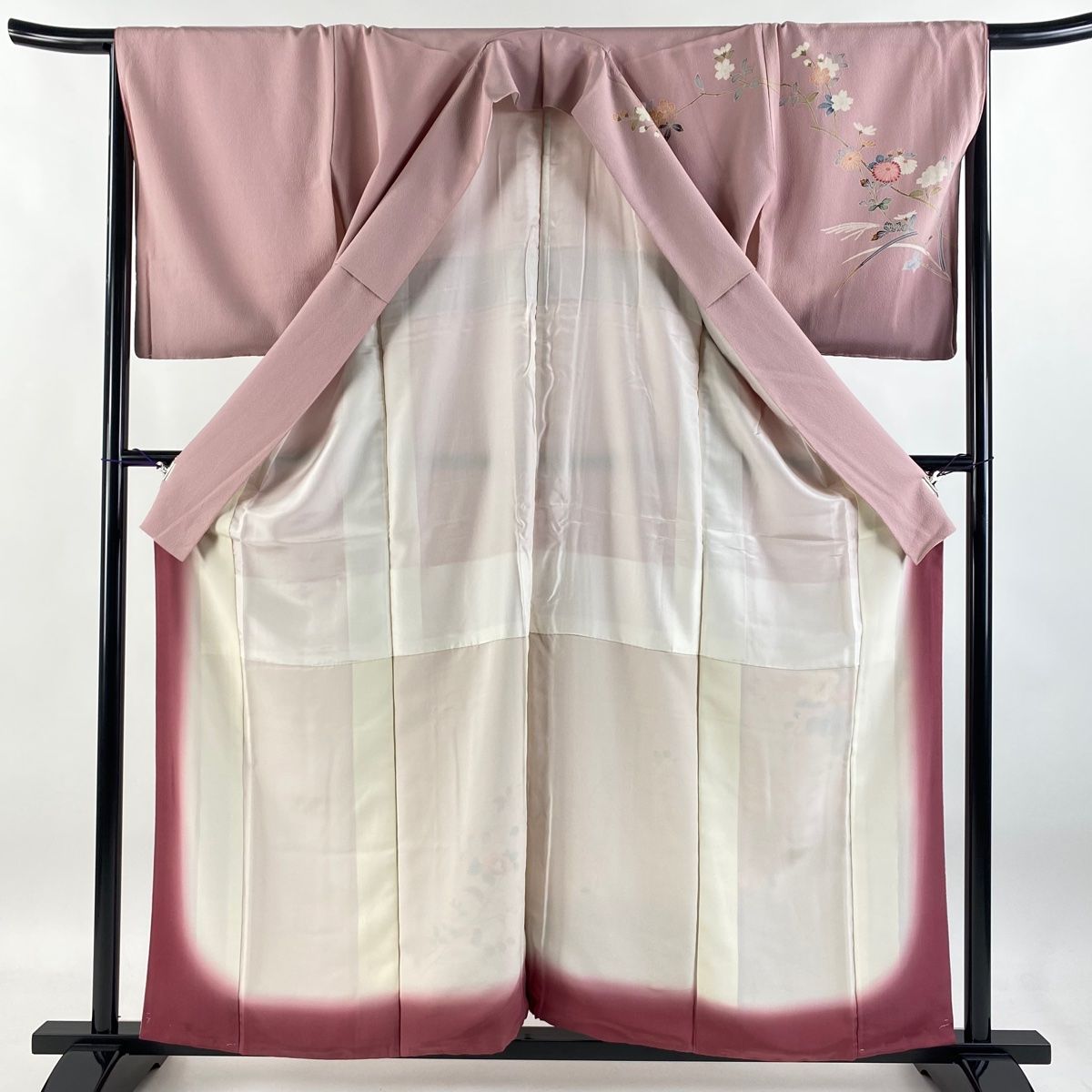訪問着 身丈159.5 cm 裄丈66 M 袷 やまと 花籠 流水 ぼかし ピンク 正絹 秀品