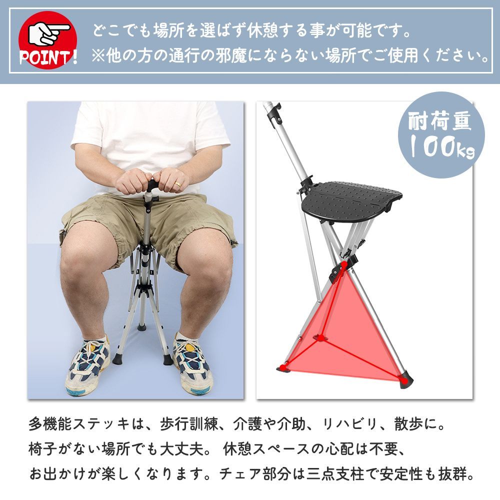 ステッキチェアー 歩行補助器 ワンタッチ 座れる杖 高齢者 散歩 歩行補助器具 椅子になる杖 並び必要 介護用品 椅子付き折りたたみ