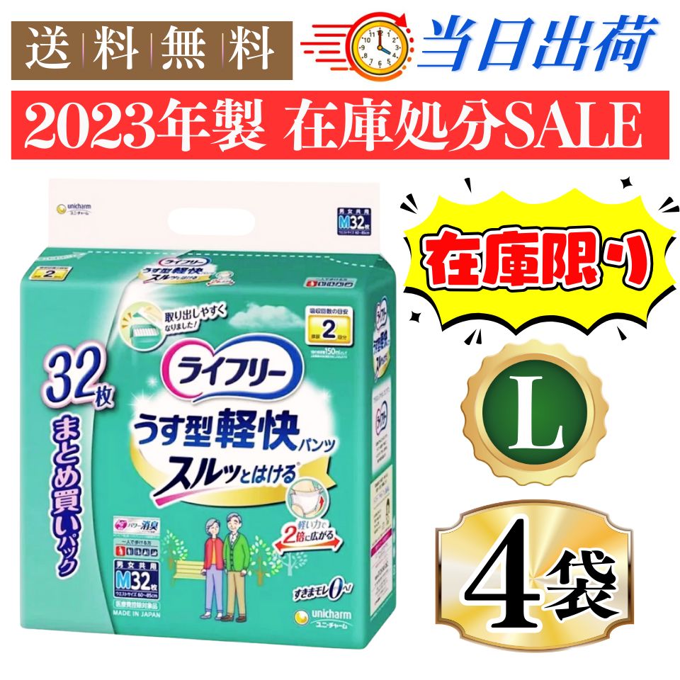 ライフリー うす型軽快パンツ L 入 4袋セット 2回吸収 パンツ型 大人用おむつ 紙おむつ 紙パンツ大人用 はくパンツ 大人用紙おむつ ユニチャーム