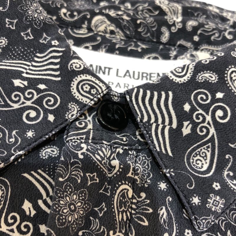 サンローラン SAINT LAURENT スカルプリント長袖シルクシャツ 564172 ブラック シルク メンズ 長袖シャツ