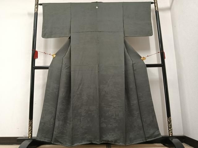 平和屋着物 上質な色無地 人物草花地紋 消炭色 正絹 ph