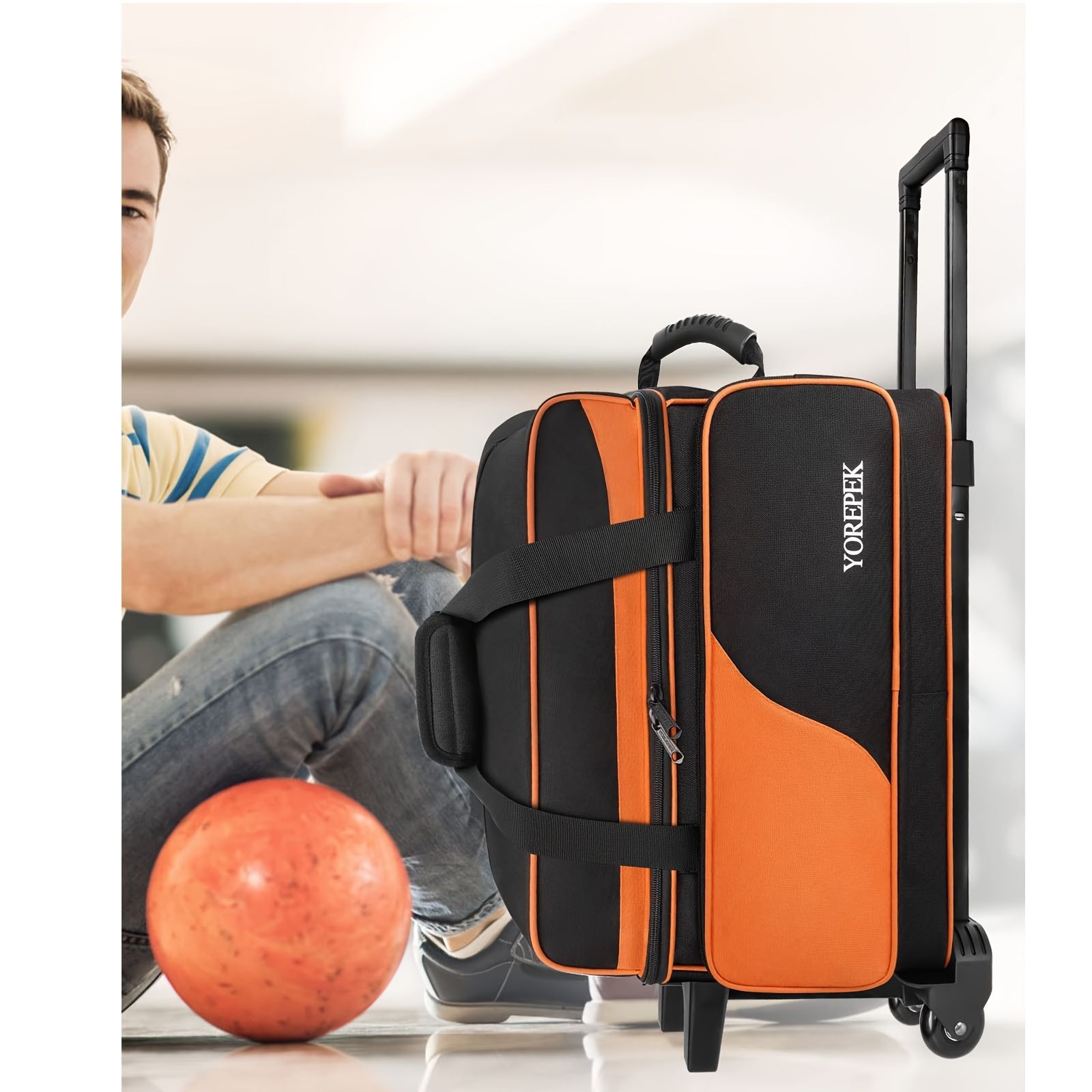 ボウリング バッグ ボール キャリー 車輪 2つ収納 シューズ ハンドル ブラック オレンジ シンプル 大容量 自立 かばん 仕切り クッション 上級者 2 way
