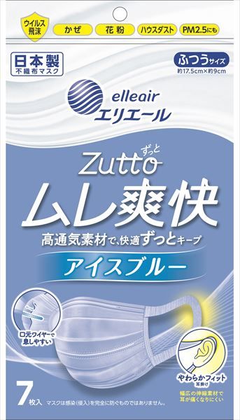 80点セット エリエール Zutto ムレ爽快 アイズブルー ふつうサイズ 大王製紙 マスク