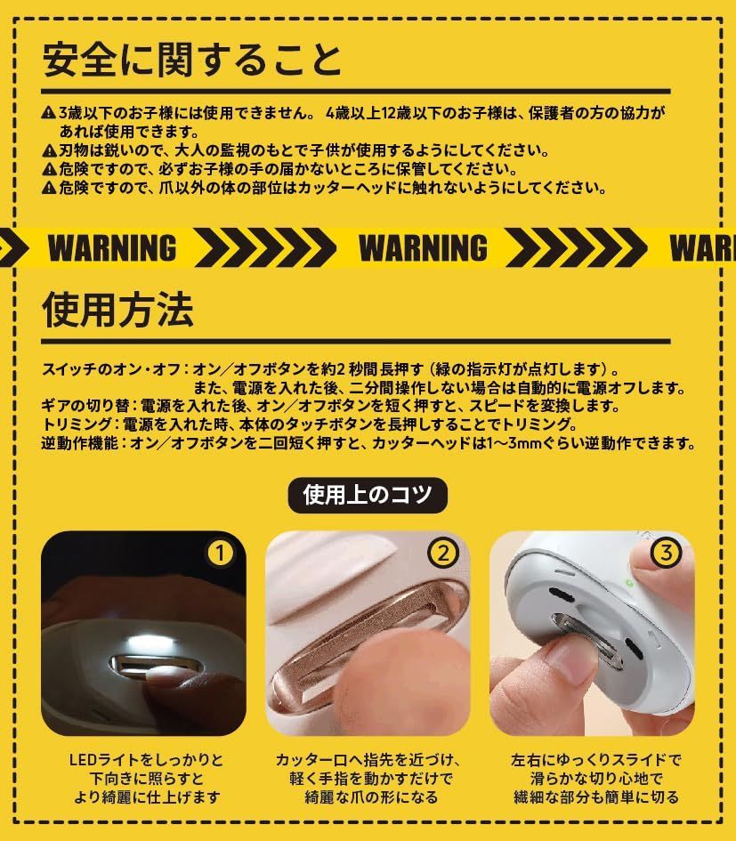 静音 コンパクト 子供 高齢者 足爪 2段階調整 LEDライト付き 充電式 ホワイト 爪切り 電動爪やすり Pro GeeMagic