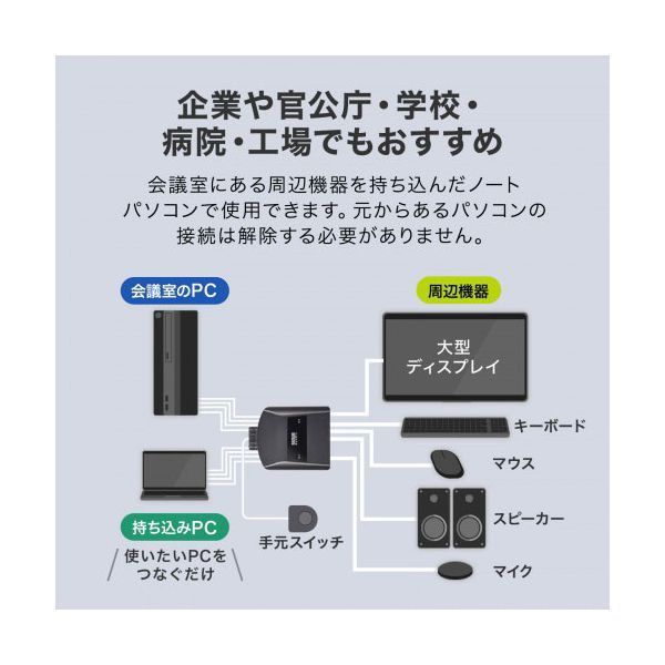 ●ソフトウェアのインストールが不要で接続するだけで切り替えて使用することができます。