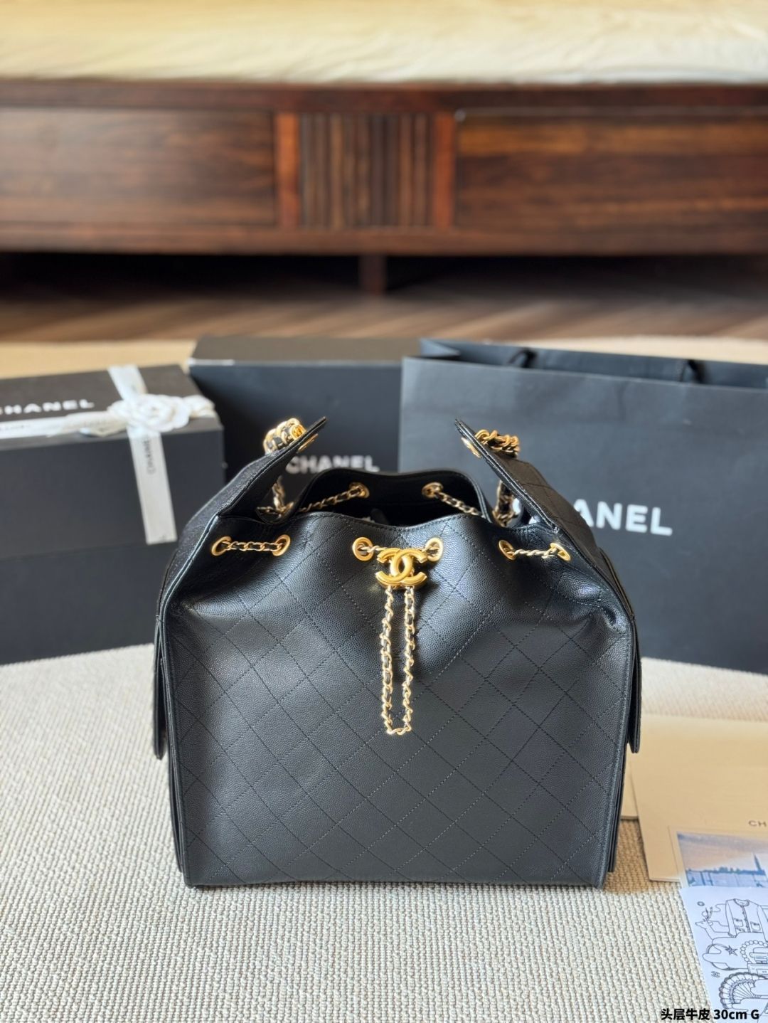 サイズは 30×28cm で、十分な容量があり、日常の小物や、旅行の際の必需品などを余裕で収納できます。シャネルならではのクラシックなデザインで、どんなスタイルにも合わせやすく、どんな場面でも活躍します。