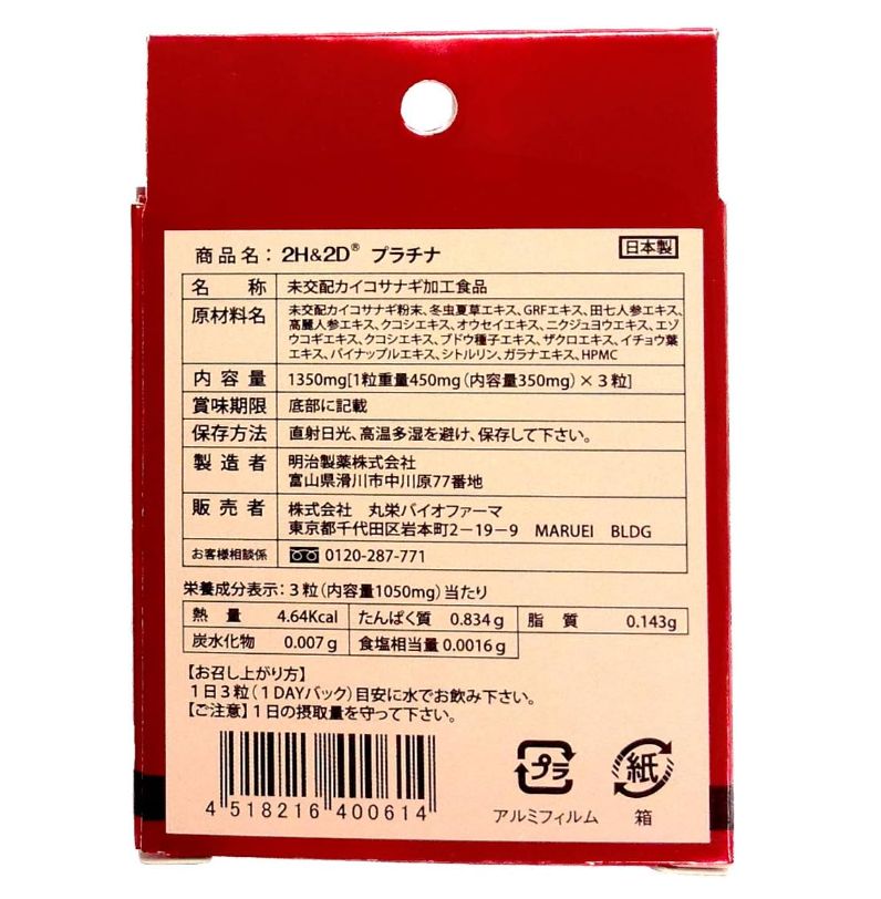 あの2H&2Dがプラチナになって帰ってきました。「天の虫」とも称する蚕の蛹を初め、100%天然成分で作られた良質な栄養補助食品です。