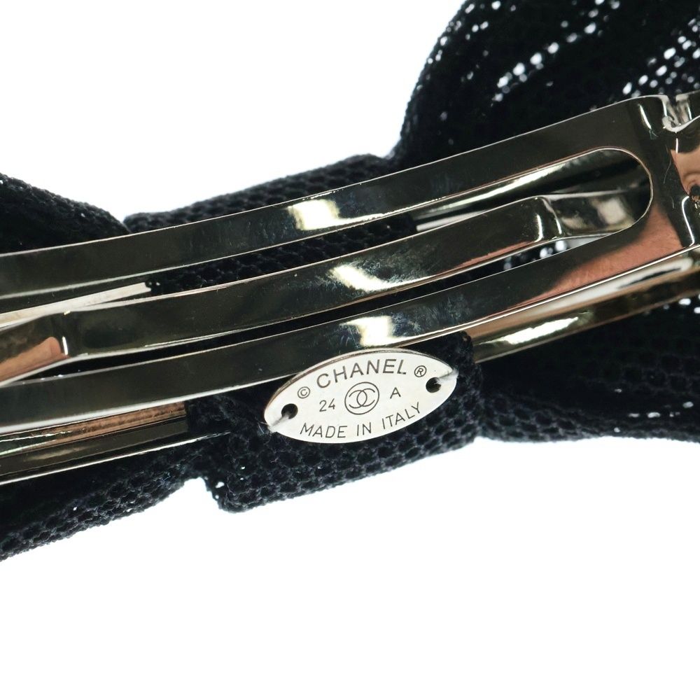 CHANEL シャネル バレッタ ヘアクリップ リボン メッシュ ブラック レディース
