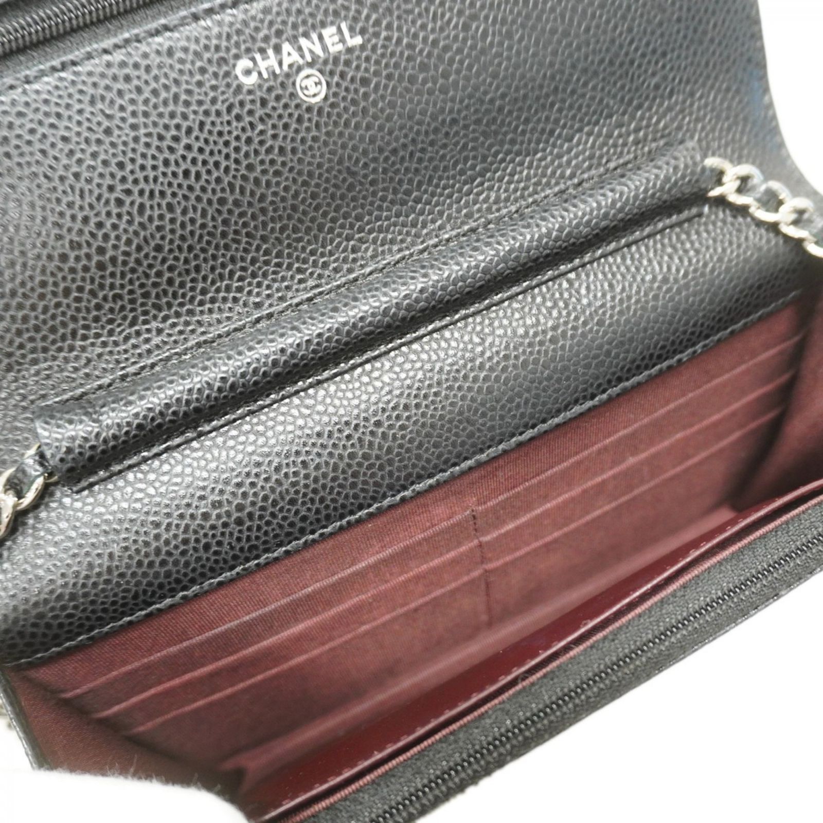 シャネル Chanel ショルダーウォレット マトラッセ チェーンショルダー キャビアスキン ブラック レディース