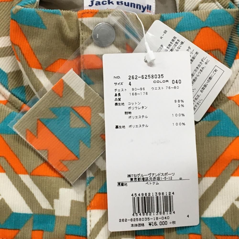 ジャックバニー 中綿コーデュロイベスト ベージュ×オレンジ 総柄 メンズ 4 M ゴルフウェア Jack Bunny
