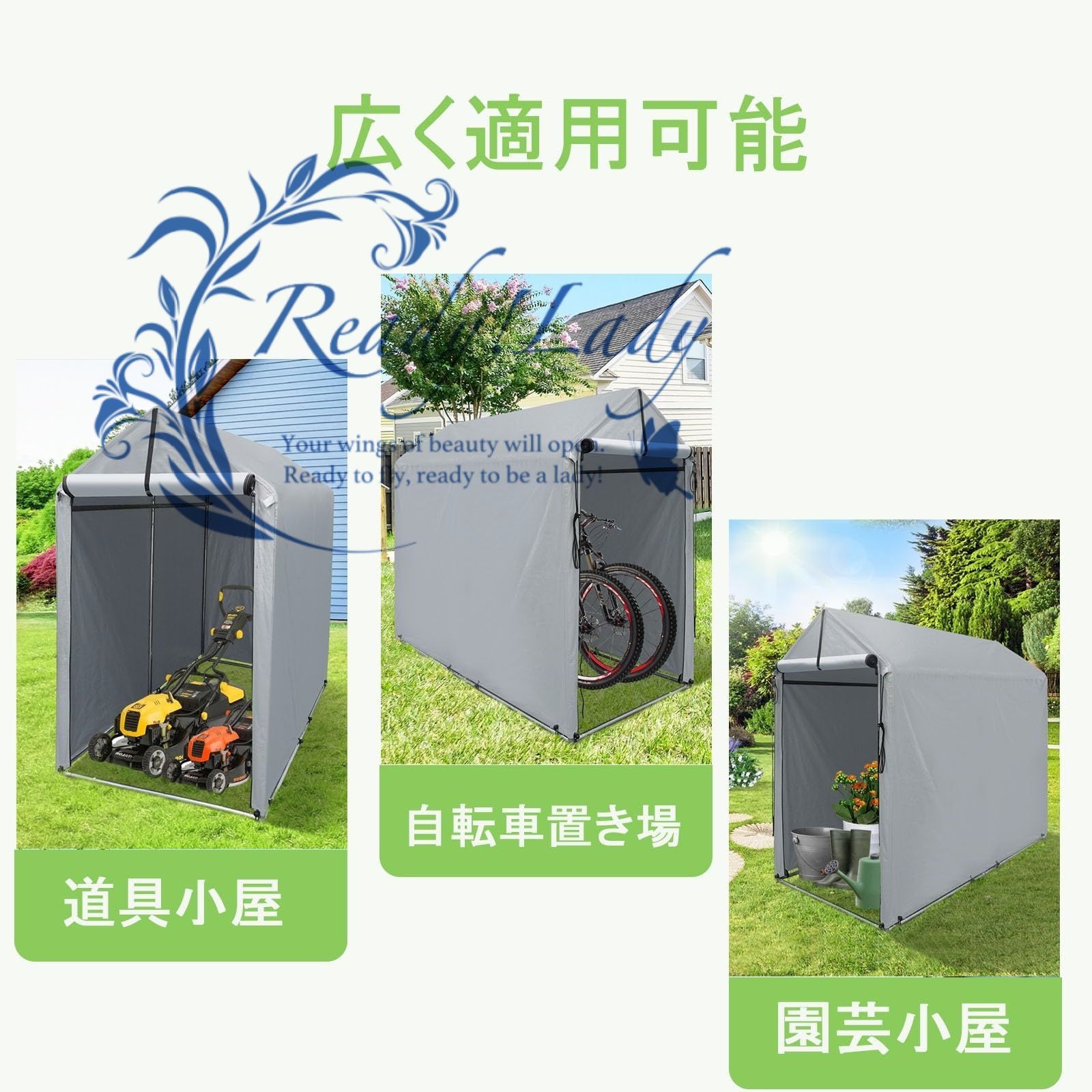 【雨よけと日よけの二重機能】:テントのターポリンは、雨や日焼けを防ぐ優れた特性を備えた特別に設計されています。 雨天時はターポリンが自転車を雨からしっかり守り、炎天下では日焼け止め効果で自転車に日陰を作り、日差しにさらされているキャノピー内のアイテムの紫外線によるダメージを防ぎます。