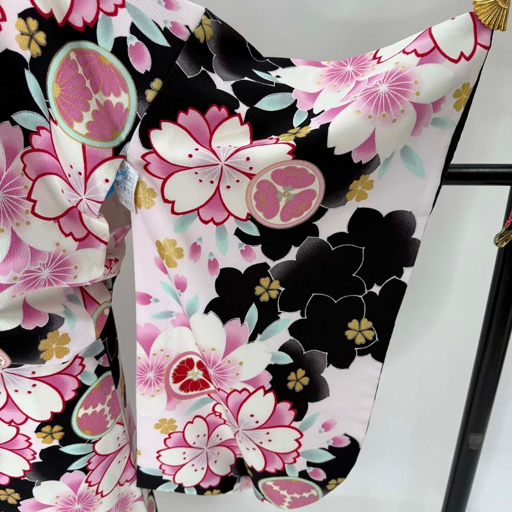 二尺袖 卒業式着物 白 黒 裄69 cm Lサイズ 袴用着物 化繊 4681