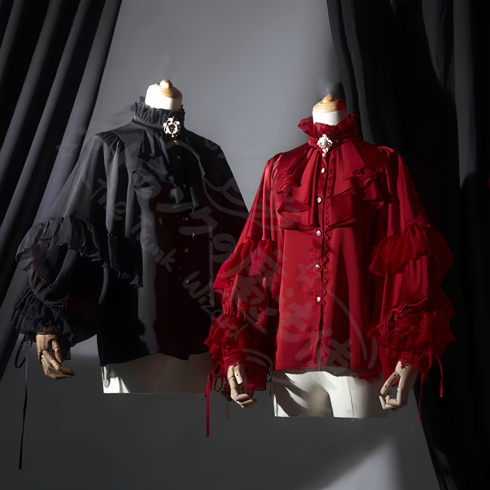 暗黒系ゴシックやロリータ、コスプレファッションにも合わせやすい豪華な姫袖&蝙蝠袖デザイン