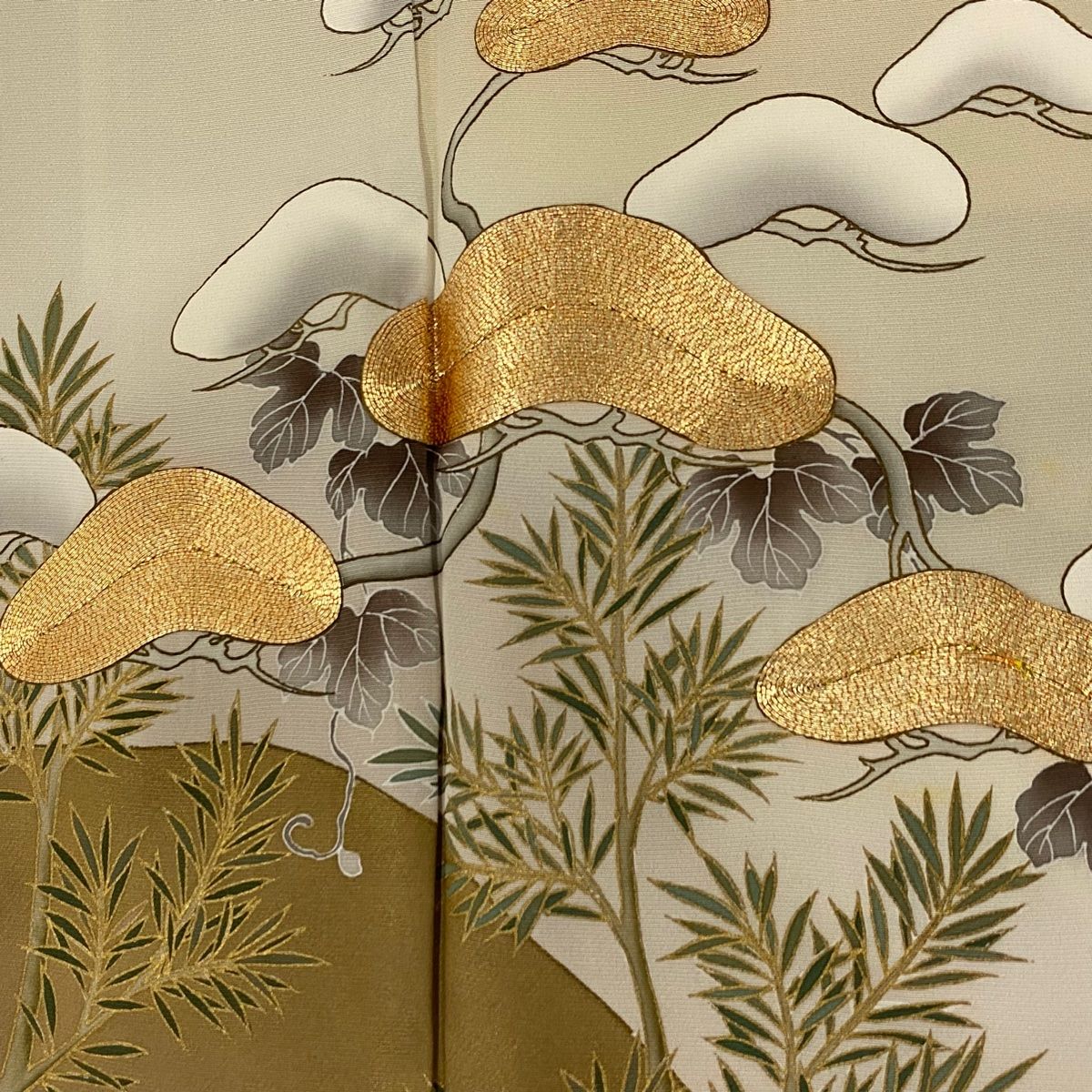 色留袖 身丈163.5 cm 裄丈68 L 袷 笠松 流水 金糸 金彩 ベージュ 正絹 秀品 一つ紋