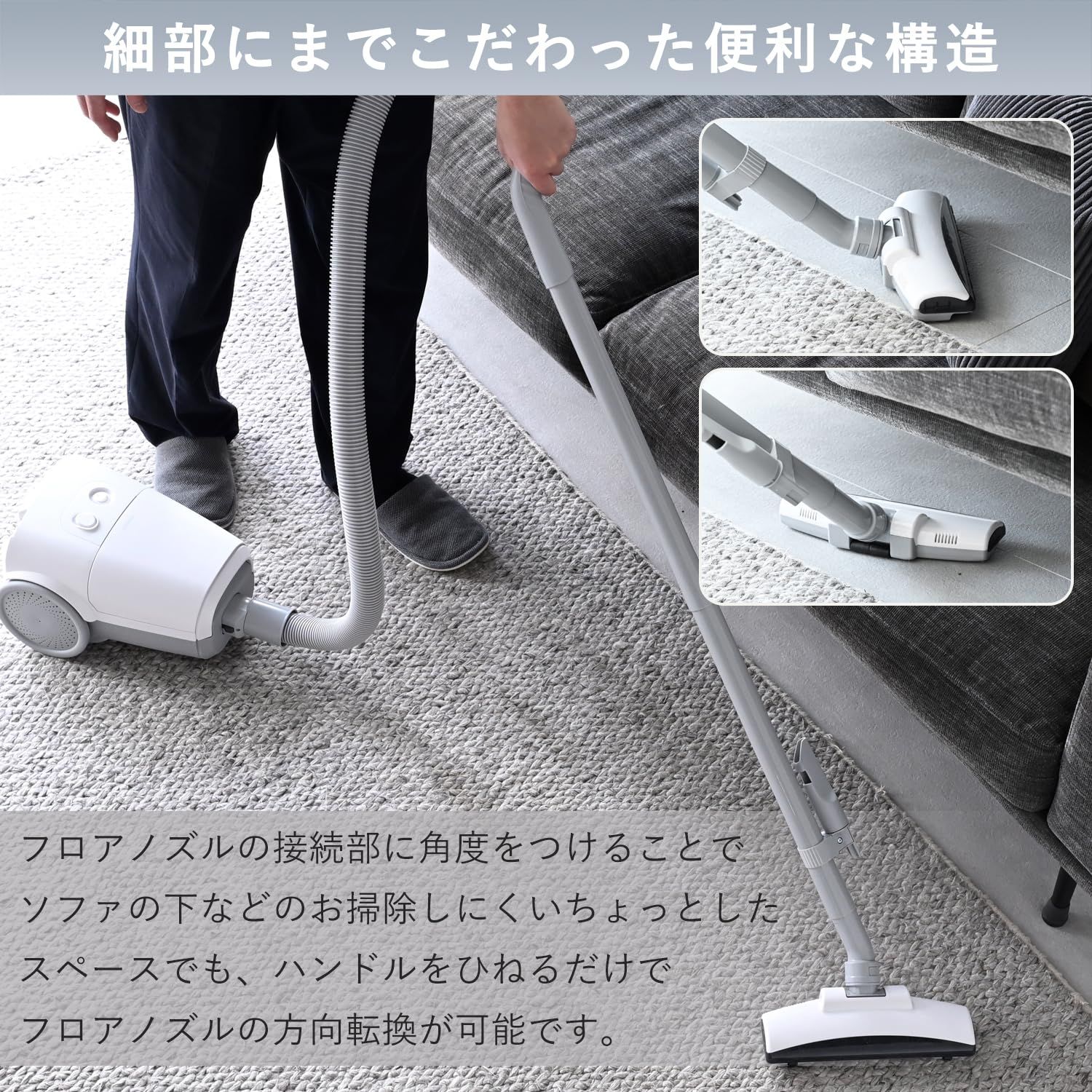 【細部までこだわった構造】フロアノズルの接続部に角度をつけることで、ソファの下などのお掃除しにくいちょっとしたスペースでも、ハンドルをひねるだけでフロアノズルの方向転換が可能です。細かい部分ですが、掃除のお悩みに寄り添った構造です。