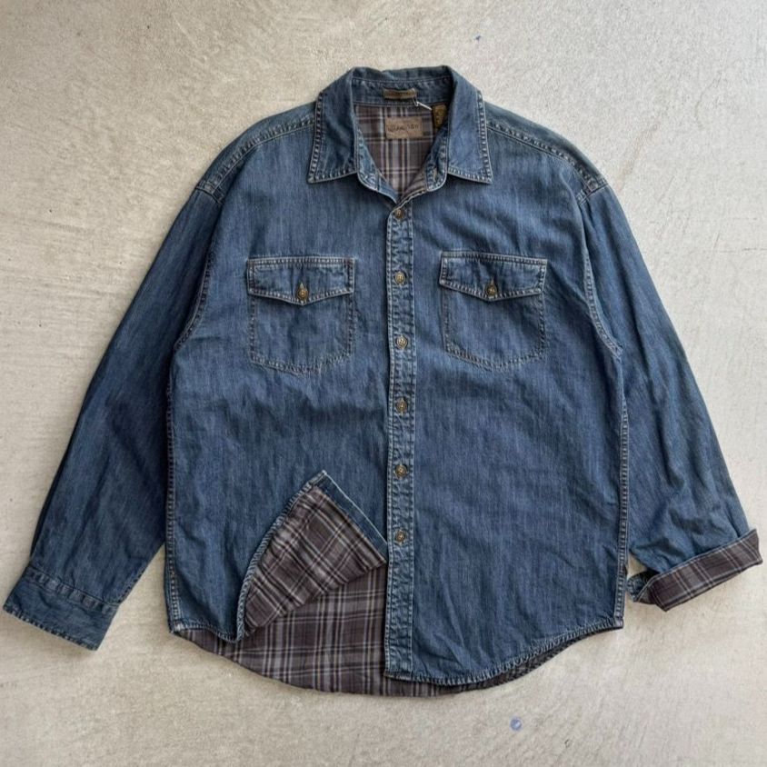 90 s セントジョンズベイ 裏ネル デニムシャツ L ヘビネル