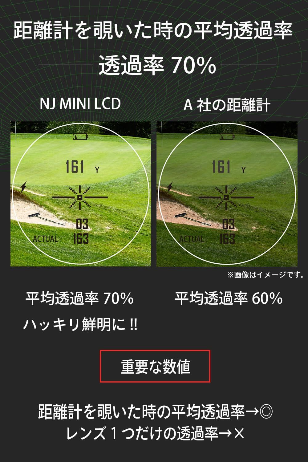 【精度の安定性の追求】NJ MINIシリーズは独自のアルゴリズム×計測スピード×旗の認識率向上により最も大きな不満の1つでもある旗の認識と測る度に数値がバラツくことを改善することにより安定性がUP