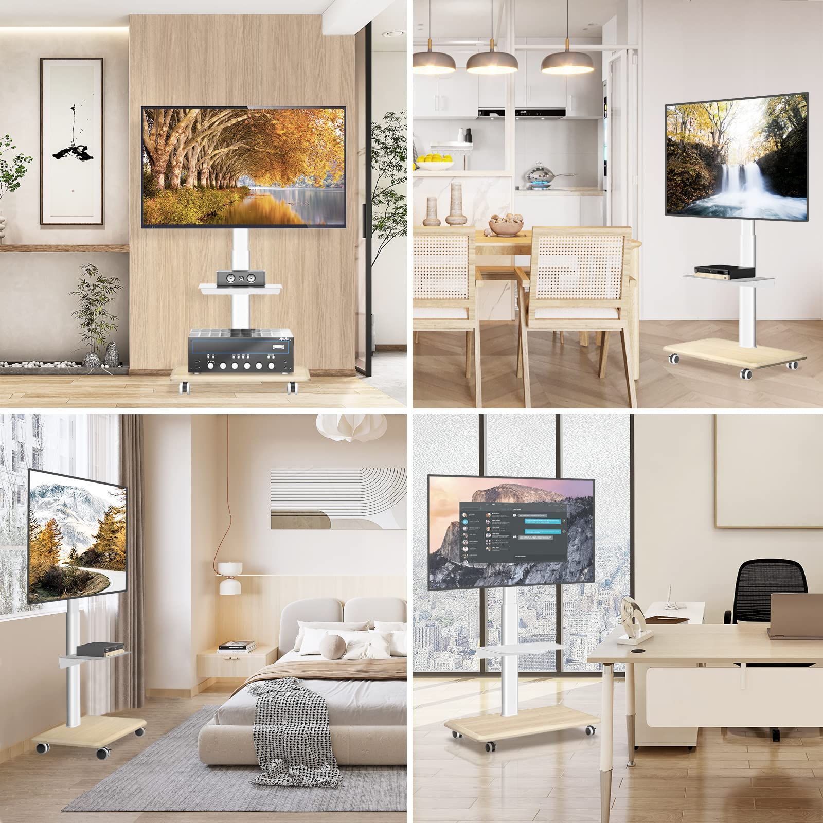 数量 耐荷重40 木製ベース kg 高さ調整 ラック回転 VESA 400 x 400まで 移動式 テレビ台 業務用 27~65インチ対応 展示用 tvスタンド キャスター付き 家用 壁寄せテレビスタンド テレビスタンド白 ホワイト Rfiver