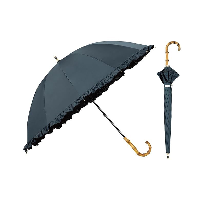 Wpc. 最強の日傘 UVO ウーボ 長傘 12 K フリル ブルーグレー 遮光率&UVカット率 |UPF 50+|遮熱|晴雨兼用 親骨55 cm レディース 女性 バンブーー 持ち手 おしゃれ 可愛い 丈夫 大人可愛い カジュアル K-24 1