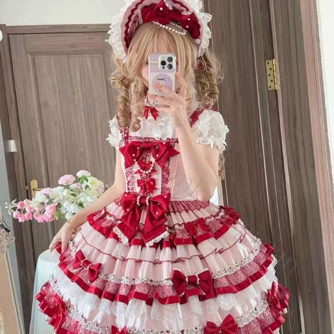 新年 用コスプレ衣装 クラシックロリータドレス リボンストロベリーロリィタJSK ボンネット付き甘ロリ