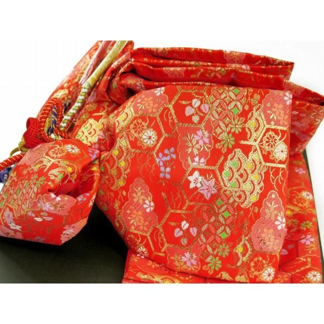 七五三 7歳女の子用 金襴 結び帯 大寸 と箱セコペアセット 赤 DPS 102