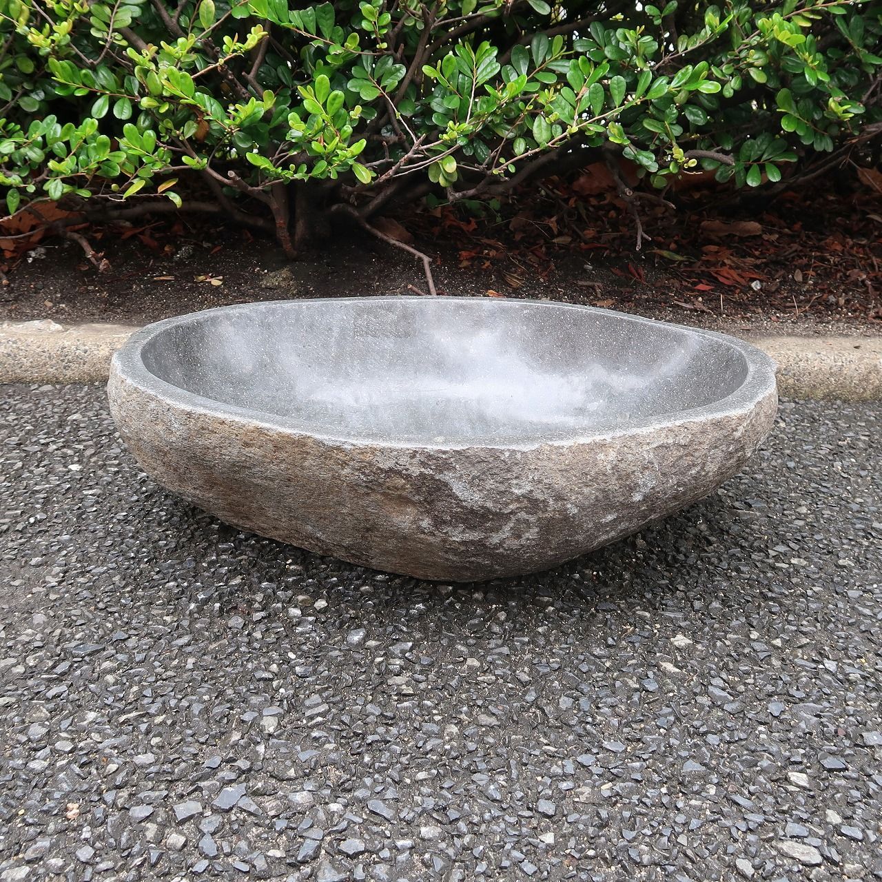 天然石をくり抜いた手水鉢 リバーストーン L 54 X 44 つくばい 睡蓮鉢 すいれん鉢 メダカ鉢 めだか鉢 ガーデン 坪庭 石材 河石 水盆 筧 県 配送不可 250932