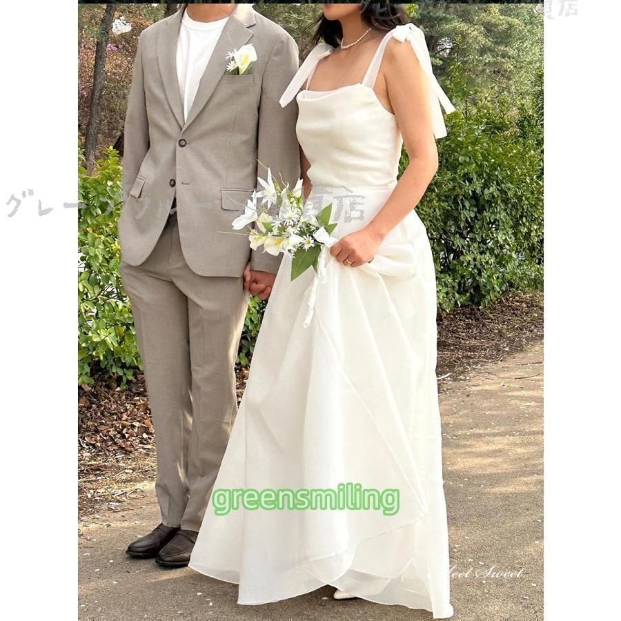 新しい♥ ウェディングドレス ロングドレス Aラインドレス オーガンジー ノースリーブ ワンピース 二次会 結婚式 前撮り ブライダル 花