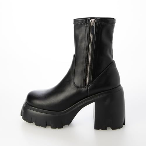 [イーボル] ファッションブーツ サイドファスナー10cm厚底ショートブーツ BL L