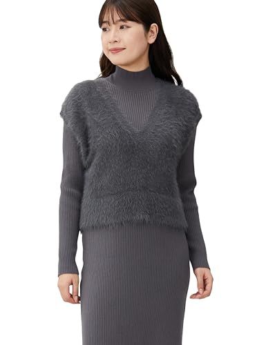 ナチュラルビューティーベーシック カジュアルドレス シャギーベスト&ニットワンピース レディース チャコール