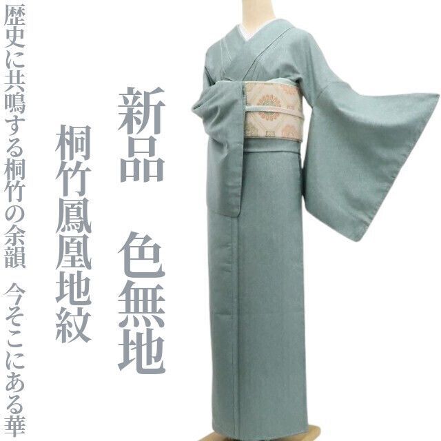 ❁tomihisa❁ 桐竹鳳凰地紋 着物 歴史に共鳴する桐竹の余韻 今そこにある華 正絹 仕付け糸付 色無地 6865