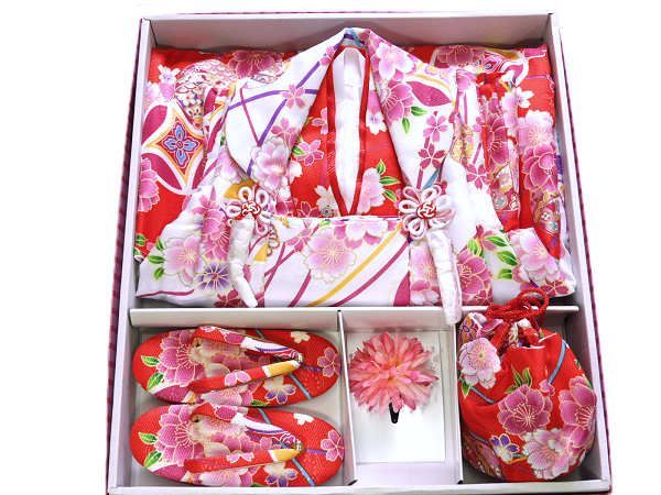 着物美人 送料込み! 七五三 女の子被布セット 赤 白 七宝 m503081