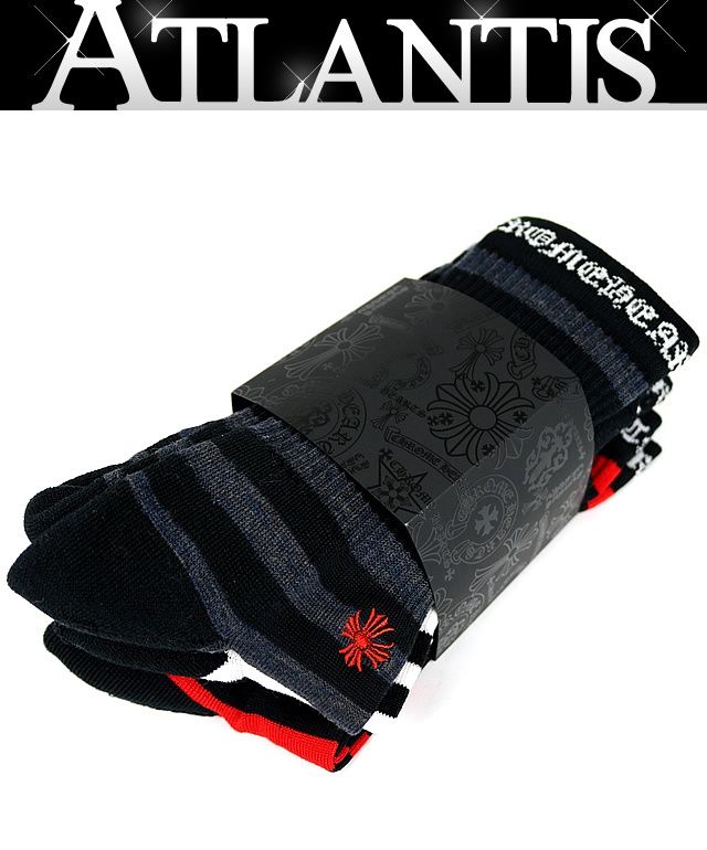 CHROME HEARTS 銀座店 クロムハーツ 新品 ボーダー 3色 ソックスセット ユニセックス size:S 赤/白/黒 100795