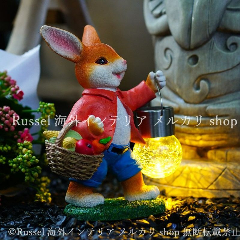ガーデンライト 太陽光 ソーラー うさぎ 樹脂 ウサギ ラビット 置物 ガーデンオーナメント ガーデニング 雑貨 ガーデン雑貨 ガーデンインテリア ガーデン インテリア 庭の装飾 お洒落 おしゃれ 8-14