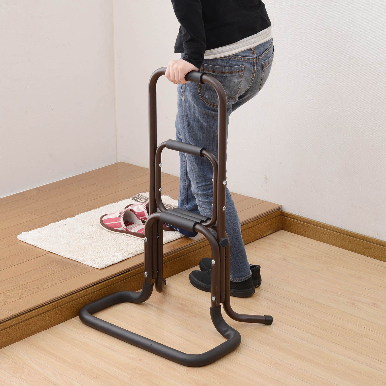 軽量で持ち運びが楽ちんなので、室内での移動やちょっとした歩行時には、移動できる簡易的な手すりのようにお使いいただくことも可能です。