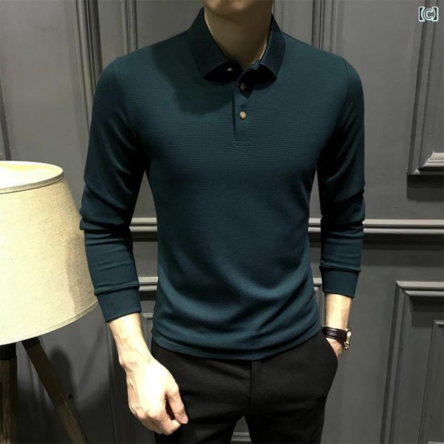 2 XL メンズ ファッション 服 男性用 オシャレ シンプル 大人 かっこいい 大きいサイズ ストリート 紳士服 厚手 長袖 ポロシャツ スリム ビジネス シャツ T 重ね着 トップス